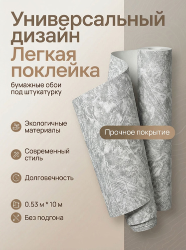 Обои бумажные рельефные с перламутром/Белорусские обои, коллекция Батик, рулон 0.53х10.05 м, светло-серый, без подгона