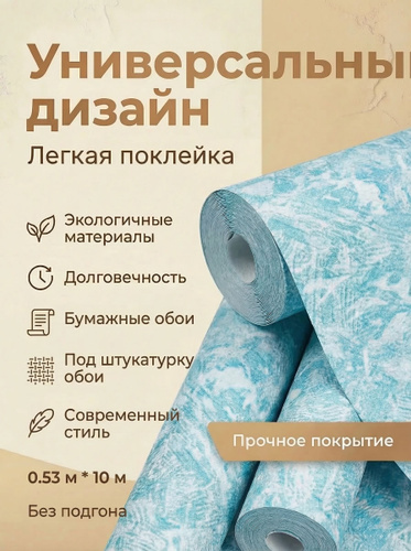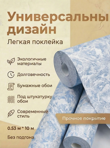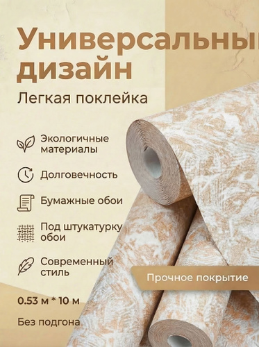 Обои бумажные с акриловым напылением без подгона, скрывают неровности, для гостиной, детской, спальни, коридора, дачи, арт.477-03, 0,53*10м.