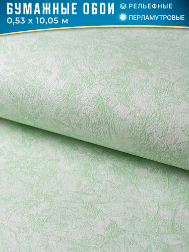 Белорусские обои бумажные рельефные с перламутром, коллекция Баккара, рулон 0.53х10.05 м, зелёный, без подгона