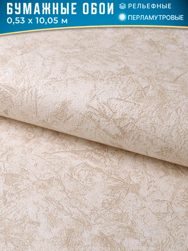 Обои бумажные рельефные с перламутром/Белорусские обои, коллекция Батик, рулон 0.53х10.05 м, светло-бежевый, без подгона