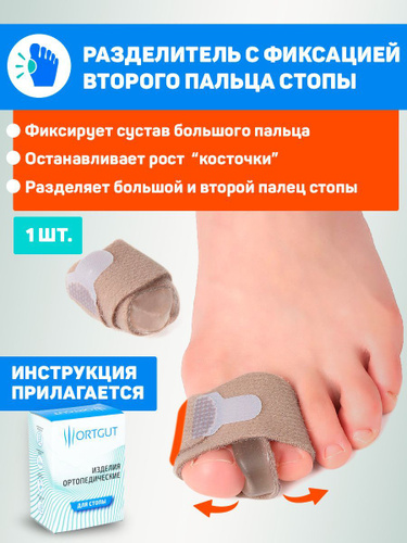 ORTGUT Силиконовая подушечка с фиксацией пальцев при молоткообразной деформации / Фиксирующий бандаж для стопы с разделителем / Стягивающая лента корректор для выпрямления пальцев ног - 1 шт