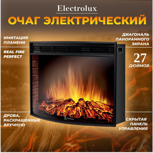 Очаг электрический Electrolux Sphere Plus EFP/P-2720RLS, панорамный очаг с диагональю экрана 27 дюйм, REAL FIRE PERFECT - максимальная реалистичность, Real Sound