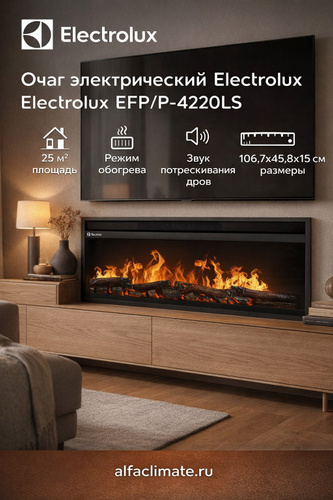 Электрический камин Electrolux EFP/P-2520LS N New стильный очаг с эффектом живого огня для уюта в доме