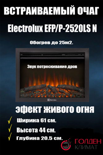 Очаг Electrolux EFP/P 2520LS N Обогрев до 25м2. Эфект живого пламя. Звук
