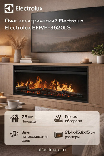 Электрический камин Electrolux EFP/P-3620LS, длинна 91 см!!!, эфф. REAL FIRE & SOUND, ПДУ, отопл., LED подсветка!