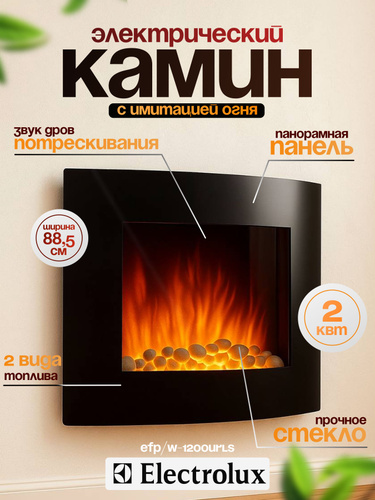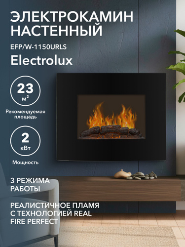 Электрический камин Electrolux EFP W 1200URLS, с панорамной панелью, эффектом живого огня, Real Fire Perfect, Real Sound, электрический очаг с обогревом, декор для дома