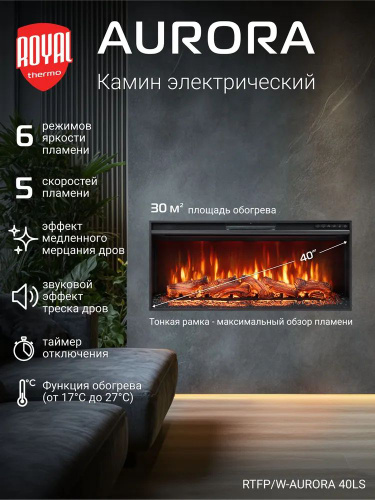 Камин электрический Royal Thermo Aurora RTFP/P-AR40LS / очаг встраиваемый
