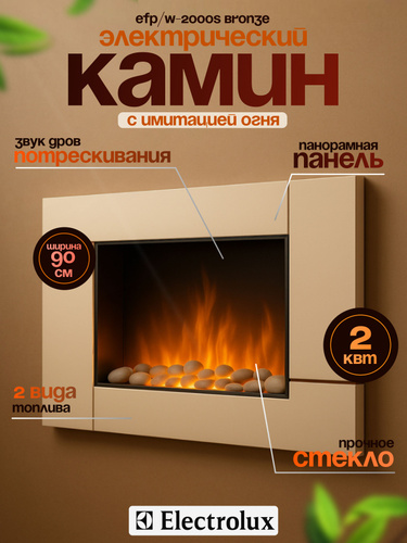 Электрический камин Electrolux EFP/W-2000S Bronze NEW, идеальное решение для дома, камин с эффектом живого огня, электрический очаг с обогревом, пульт ДУ