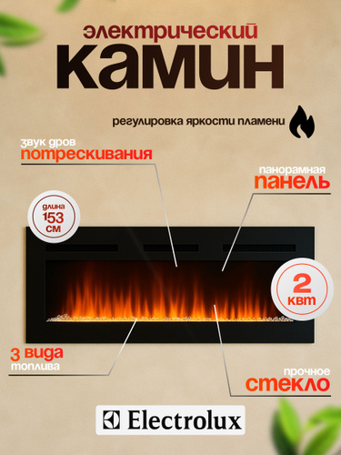 Камин электрический Electrolux Очаг Infinity EFP/P-1600ULS, длинна 152см!!!, эфф. REAL FIRE & SOUND, ПДУ, отопл.