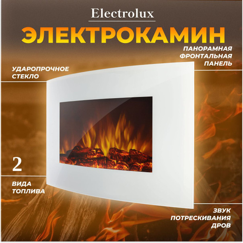 Камин электрический декоративный Electrolux EFP/W-2000S, электрокамин с очагом и порталом, управление с пульта ДУ, 3 режима работы, настенная установка, 2000 Вт