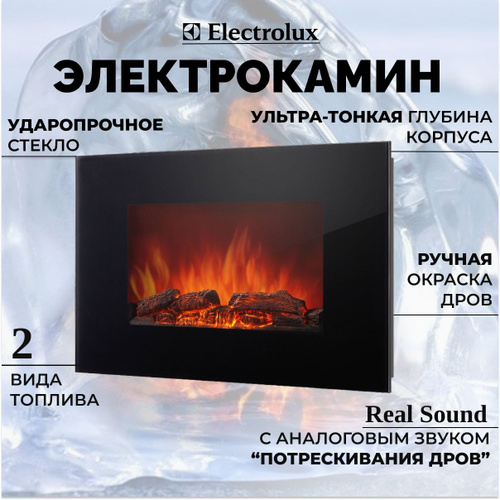 Электрический камин Electrolux EFP/W-1250ULS, ударопрочное стекло, REAL FIRE PERFECT - максимальная реалистичность, Real Sound, Ручная окраска декоративных дров