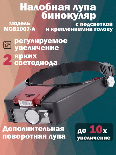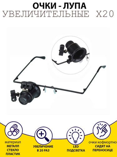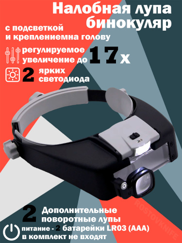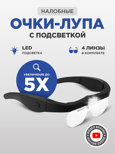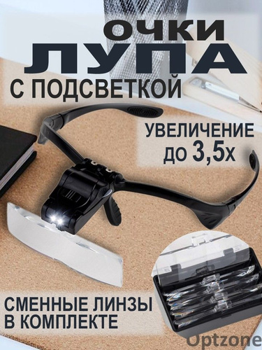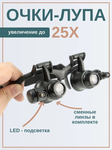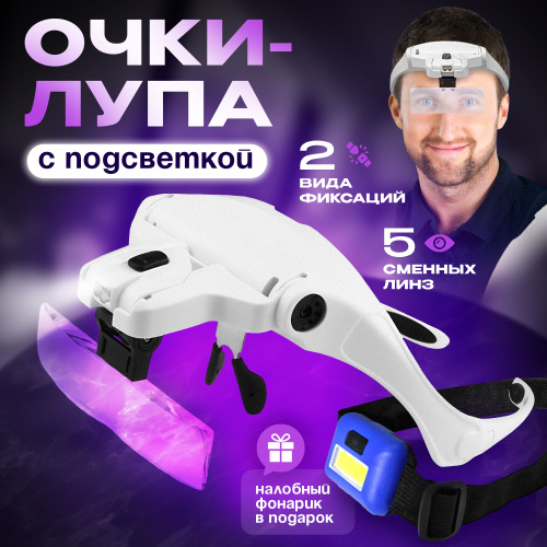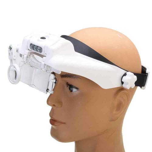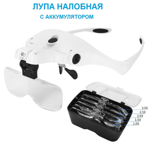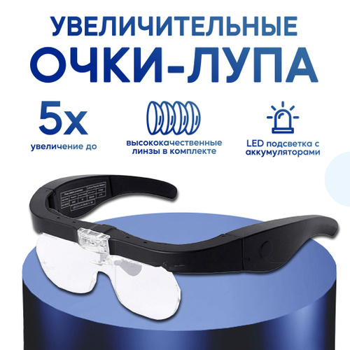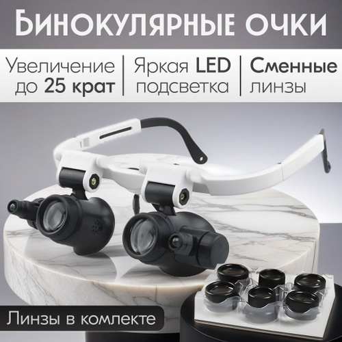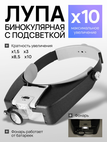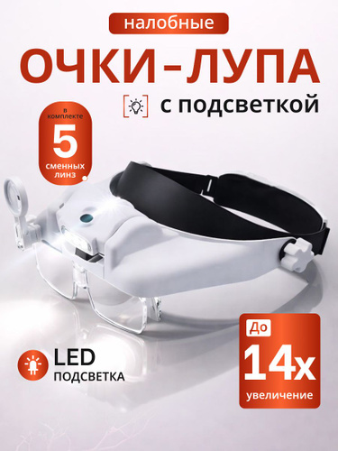Лупа с подсветкой налобная; бинокулярные очки с подсветкой; на батарейках