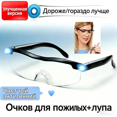 Очки лупа увеличительные с подсветкой , со сменными линзами, лупа с подсветкой,подарок девушке на 8 марта
