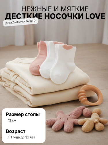 Носки для малышей нежные, износостойкие носочки, размер ножки 12 см, для маленьких ножек с 1 года до 3х лет