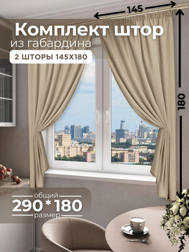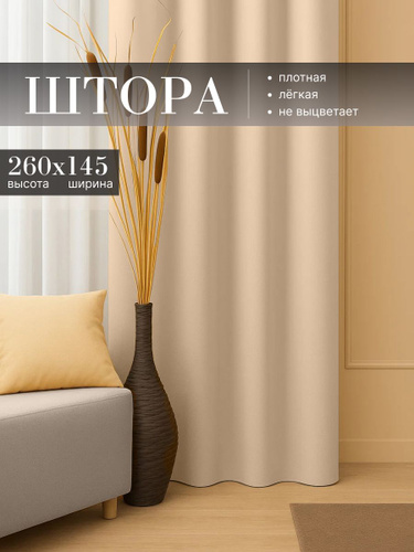 Шторы однотонные комплект из 2 штук 145х180 см Цвет: Бежевый