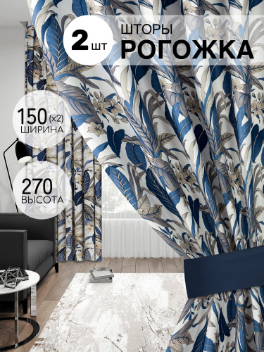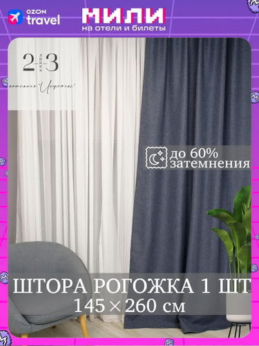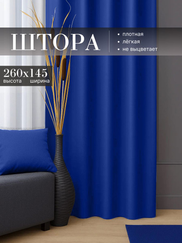 Широкая штора рогожка 23 Линия, ночная для спальни, гостиной, 1 шт 145*260 см, синяя
