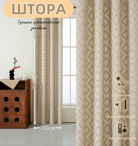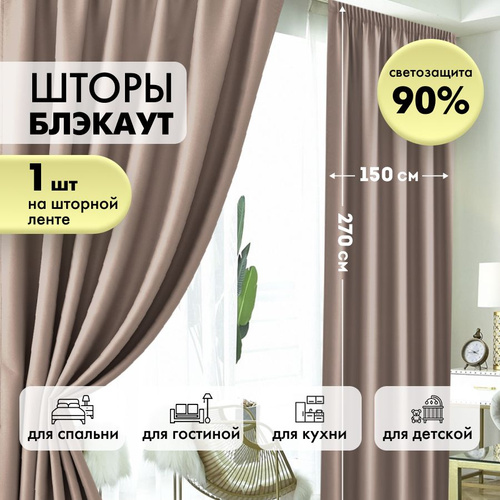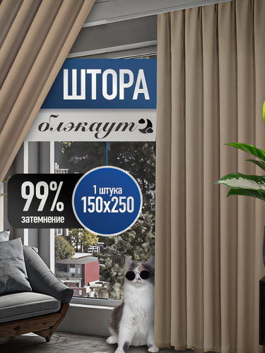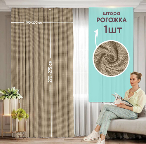 Одна комнатная штора рогожка димаут / темно-бежевая рогожка / плотная песочного цвета портьера размером 190 (200)*270 (275) см (1 шт.)