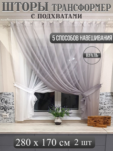 Бомонд / Шторы для кухни короткие тюль - вуаль Ника 280x170