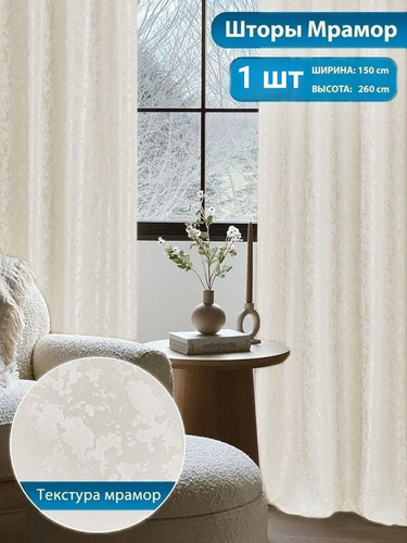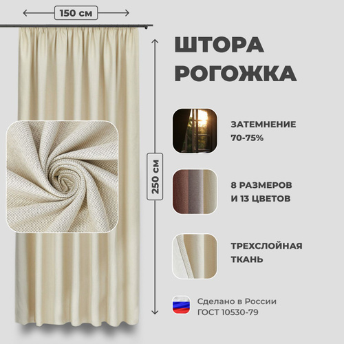 Штора для комнаты 150x250 см Блэкаут рогожка Shtoraland на ленте для крючков, одна портьера для гостиной, спальни, детской. Молочный цвет