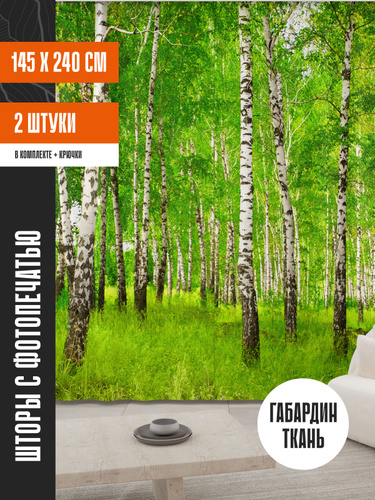 Фотошторы 145x240, 2 шт (габардин) для гостиной, спальни и кухни, плотные длинные. Комплект штор Decor-Rocket