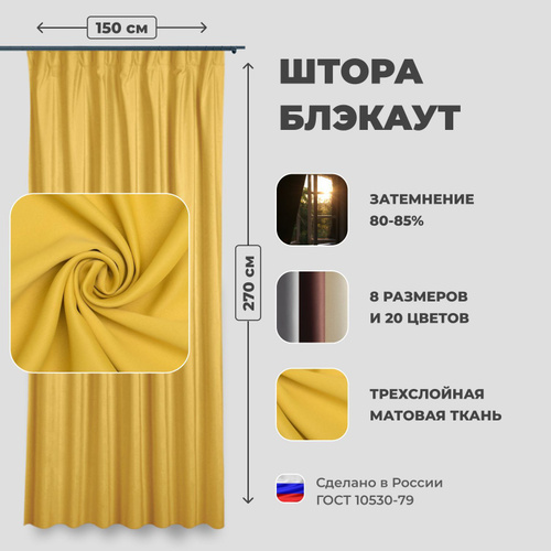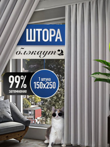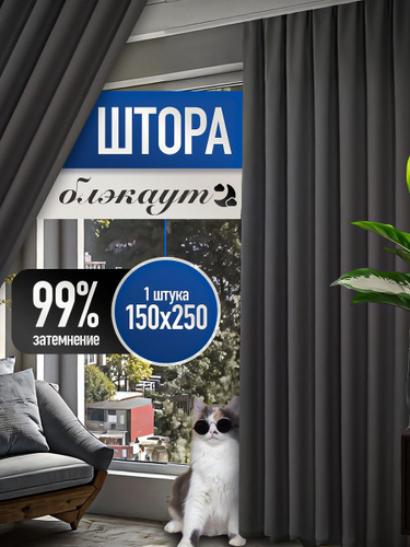 Штора для комнаты 150x250 см Блэкаут однотонный матовый Shtoraland на ленте для крючков, одна портьера для гостиной, спальни, детской. Черный цвет
