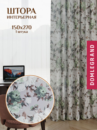 Шторы для комнаты Букет габардин 150*270 зеленый. Интерьерные занавески без эффекта блэкаут для кухни, детской.