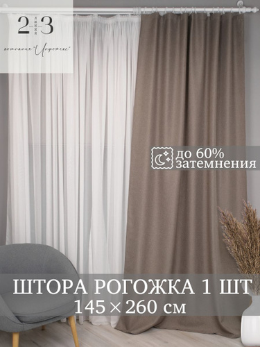 Штора рогожка ночная 23 Линия для спальни, гостиной, 1 шт 145*260 см, бежевый