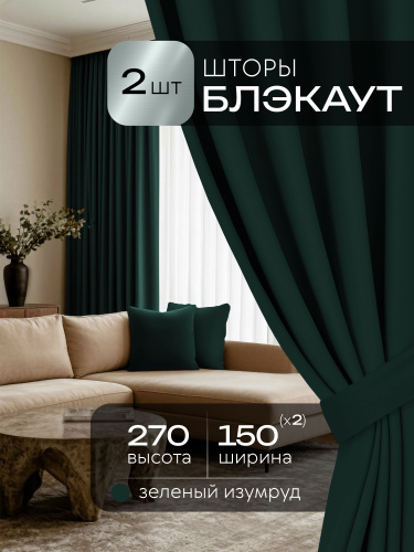 Шторы однотонные комплект из 2 штук 145х180 см Цвет: Изумрудный