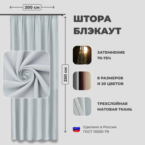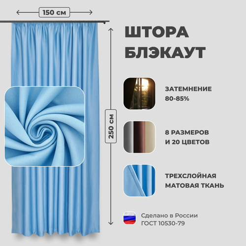Штора для комнаты 150x250 см Блэкаут однотонный матовый Shtoraland на ленте для крючков, одна портьера для гостиной, спальни, детской. Голубой цвет