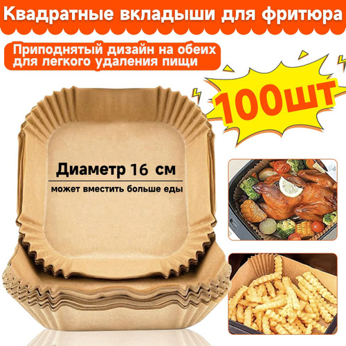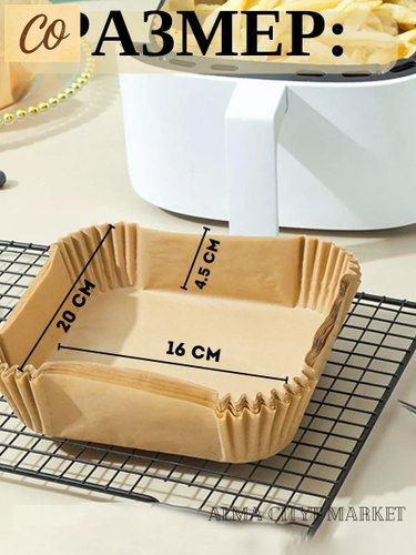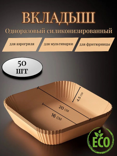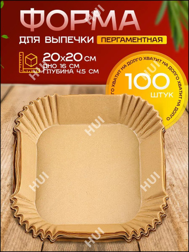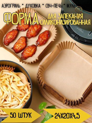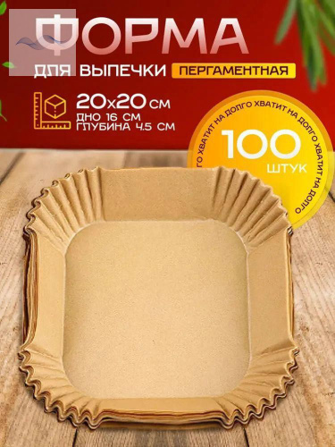Формы бумажные одноразовые квадратные для мультиварки, аэрогриля, запекания, 20 см, 50 шт.