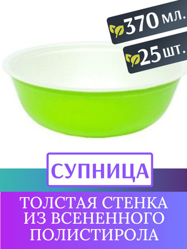 Супница глубокая (миска) 370 мл. ЦВЕТ САЛАТОВЫЙ, 25 шт. Вспененный полистирол (толстая стенка). Серия KIOTO