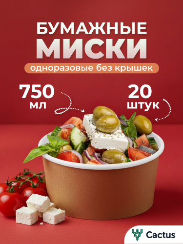 Тарелки одноразовые бумажные глубокие 750 мл, набор посуды для кухни, 20 шт, Cactus