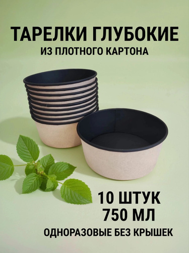 Тарелки одноразовые бумажные глубокие для супа - 750 мл, набор посуды 10 штук, черные миски, контейнер для салата