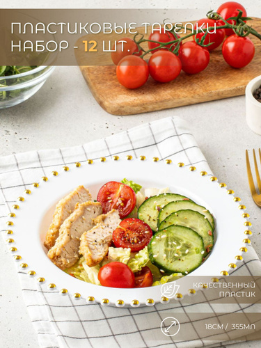Одноразовые пластиковые глубокие тарелки. Набор 12 штук.