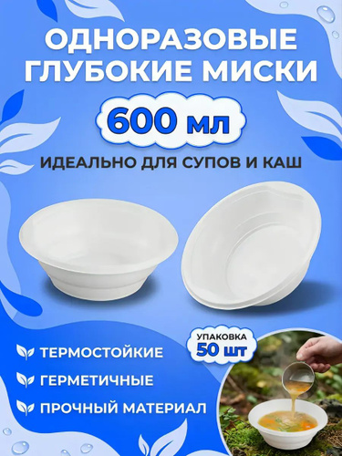 набор одноразовых пластиковых тарелок глубоких миска 50 шт - 0,6 л, для супа пикника похода дачи