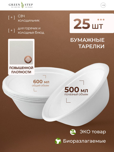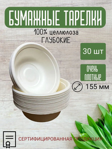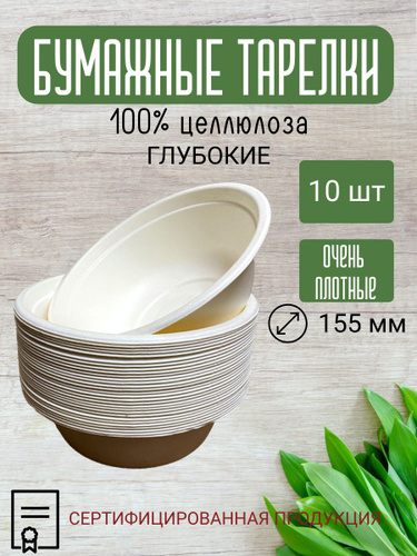 Одноразовая посуда / Тарелка глубокая, миска для супа одноразовая биоразлагаемая бумажная, объем 500 мл, 10 шт. в упаковке