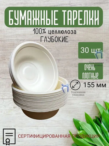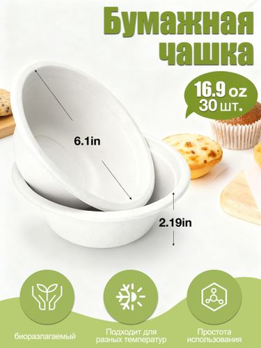 Одноразовая посуда / миска для супа / Тарелка глубокая, 500 мл, 30 шт.
