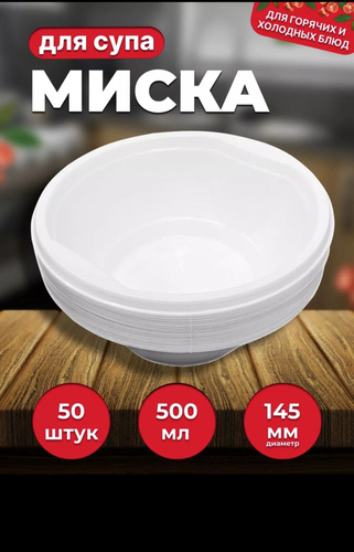 Одноразовая миска для еды.50 шт.300 мл.Крышки нет.