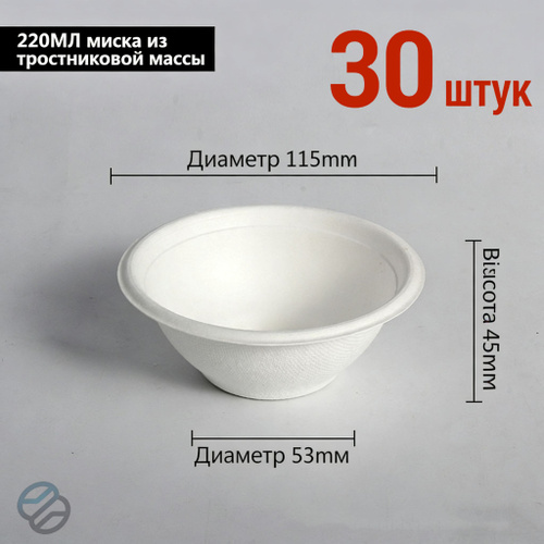 Одноразовые миски для супа объемом 220 мл, 30 штук, практичная утилизируемая посуда
