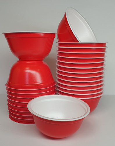 Супница глубокая (миска) 500 мл. КРАСНАЯ, 25 шт. Вспененный полистирол (толстая стенка) серия KIOTO