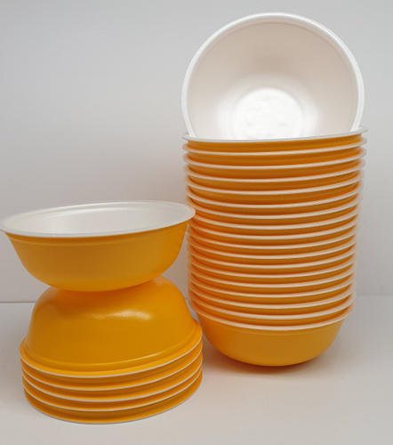 Супница глубокая (миска) 370 мл. ЖЕЛТАЯ, 25 шт. Вспененный полистирол (толстая стенка) серия KIOTO