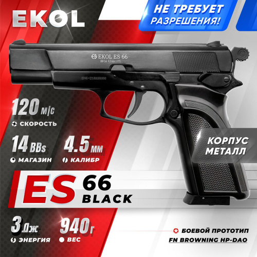 Пневматический пистолет EKOL ES 66 Black, (металл) кал. 4,5 мм, 3 Дж