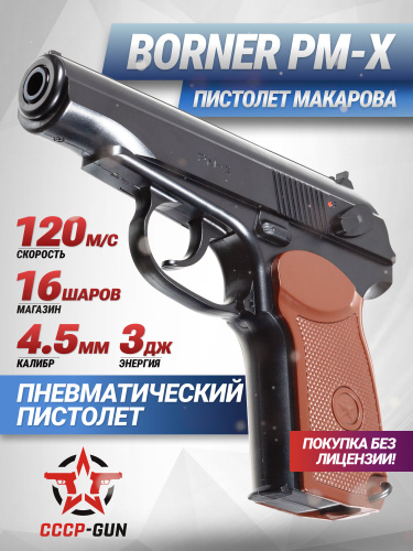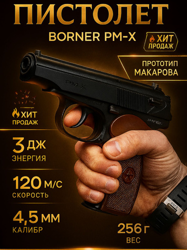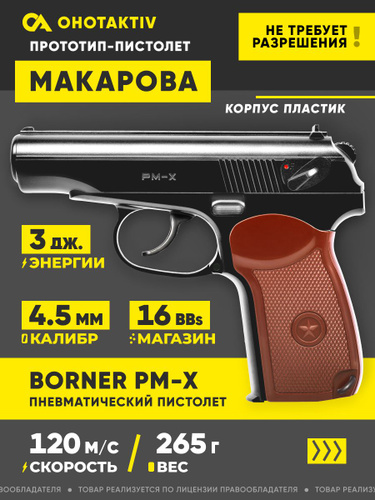 Пневматический пистолет BORNER PM-X, кал. 4,5 мм 8.3011 (ПМ-Х, пистолет Макарова)