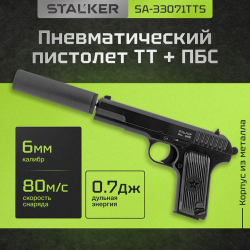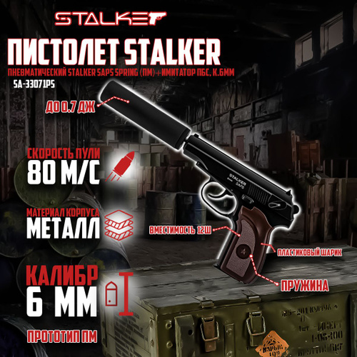 Пистолет пневматический Stalker SAPS Spring (ПМ)+имитатор ПБС, к.6мм