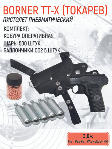 Пистолет пневматический BORNER TT-X Комплект с кобурой, баллончиками и шарами