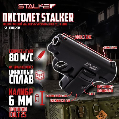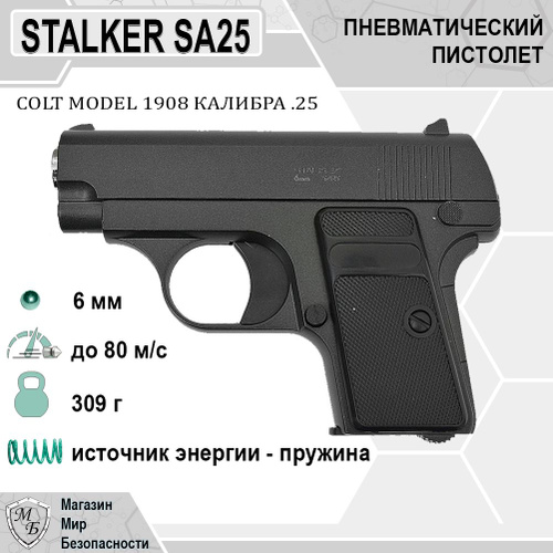 Пистолет пневматический Stalker SA25 Spring (Colt 25), калибр 6 мм, магазин 7 шариков