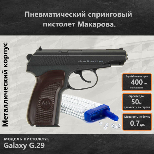 Пневматический пистолет Макарова (ПМ) для страйкбола металлический 6мм