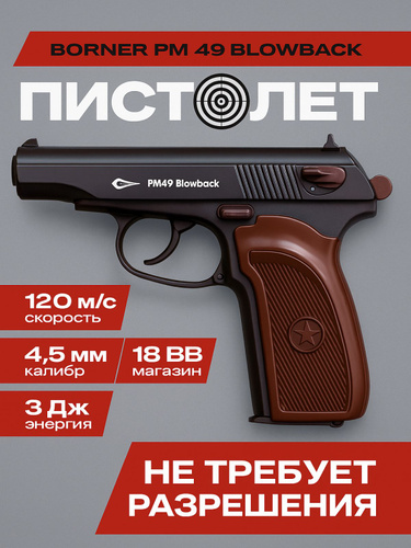Пневматический пистолет Макарова "BORNER" ПМ49 (Blowback) металл