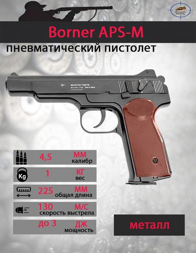 Пневматический пистолет Borner APS-M 4.5 мм (black, металл, АПС)