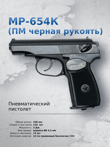 Пистолет пневматический МР-654К (обн. Ручка черная) (3дж) 84372